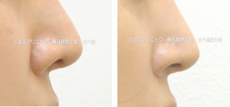小鼻が引き上がり、形がよくなりました。