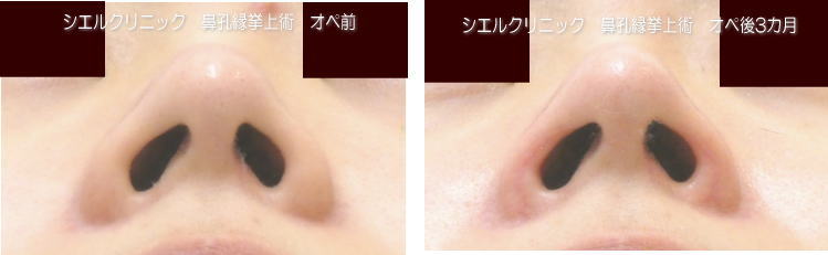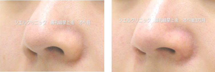 小鼻が引き上がり、鼻柱が下がりました。