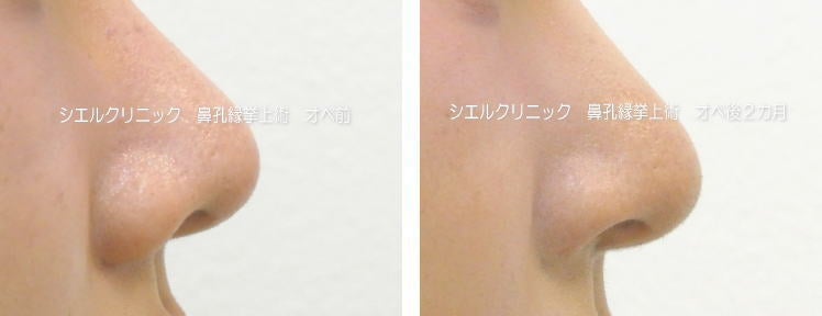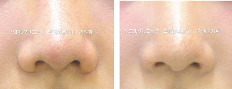 小鼻の厚みが減っていますが、鼻の穴は大きくなっていません。