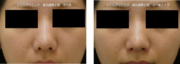 以前の方法を行なっていた時代は、主に小鼻縮小の修正で鼻孔縁挙上を行なっていました。