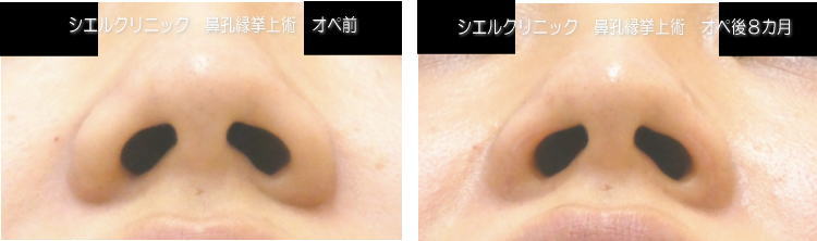 小鼻の横幅、大きさ、土手の形、小鼻外側の影のどれもが改善しています。