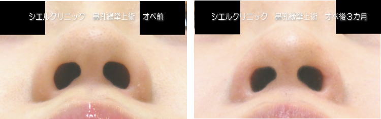 小鼻外側の丸みと、笑った時に小鼻の縦の長さが長くなる事を気にされていました。