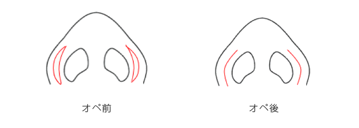小鼻の横幅や小鼻のボリュームが小さくなり、小鼻がすっきり小さくなります。